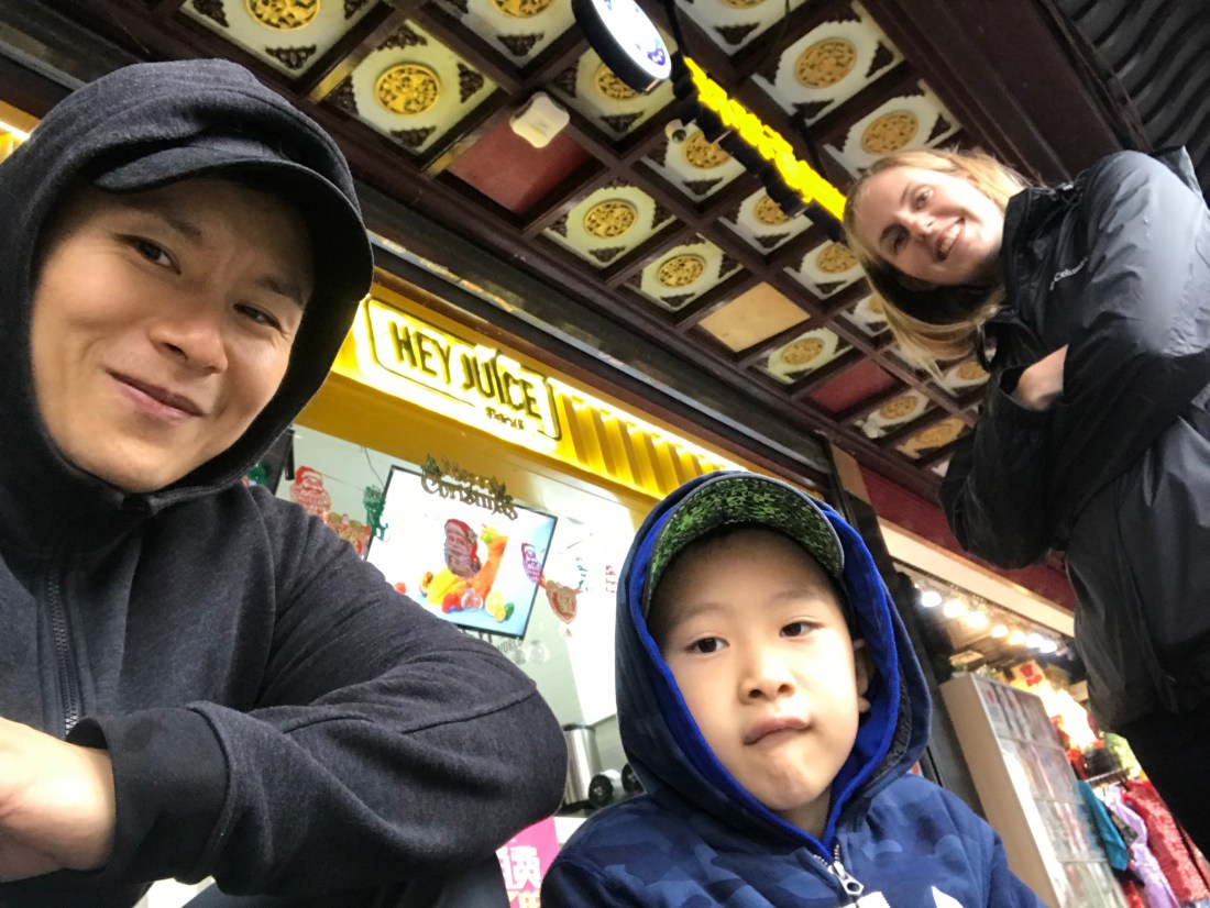 Village. We had dumplings, wonton soup, some deep-fried bread, and soft tofu soup. It was delicious! Afterwards, we desperately needed coffee (as Yang and I have both found out that we get headaches if we don’t get caffeinated fast enough) so Yang suggested we go to the cat cafe that we had seen in Tianzifang the day before (Tono’s Palace). It’s so easy to get lost in the alleys so it took awhile until we finally found it. There were at least 15-20 cats in there and they would hop up on the tables next to you – Max was ecstatic! He was a bit nervous around the cats, but he was still so happy to be around them. These cats were definitely the most active out of the cat cafes that I’ve been to. That night, Ron came back home so they ended up moving me into a hotel room that was three floors above their apartment! It made it extremely easy to meet up with them each morning and to go to bed at night.