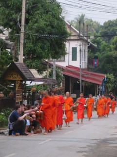 and then chase after the monks in order to get a good picture. We weren’t on the main street so it was pretty quiet where we were, but I was surprised as to how many flashes I saw in the distance, as well as how many people were following the monks when the ceremony was over. It was interesting seeing how the locals (and some tourists) just took a pinch of rice to give to each monk (there were hundreds of them) – I definitely wasn’t expecting it to be like that.