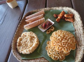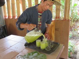 enjoy multiple rice products! Everyone eats with their hands, so we took the sticky rice, squished it in little balls, and dipped it in a Chili paste/buffalo skin mixture (yes, you read that right!) – it was actually so delicious! I ended up being the only one who finished all of my rice. We also tried some rice wine, which was extremely strong!