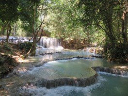 water was so cold so I didn’t actually swim in it – I just sat in it with my feet in the pool. The group said that they would be quick and come back down as soon as they could so I was surprised that at 3:10, they still hadn’t come down since we were supposed to be back at the tuktuk at 3:30. However, I figured that maybe I just missed them when they walked by. I got out, changed, walked back to the tuktuk, and made it there RIGHT at 3:30. However, it was only the driver who was there. I sat in the back and we waited for about 15 minutes before everyone else showed up. They said that they left the cave at 2:30 and were going as fast as they could, so it took them over an hour to get back. By the time we got back to our hostel, it was just before 5pm so I showered and then all of the people from the slowboat arrived. I went for dinner with a girl from Russia, where we split a couple of dishes and paid 27,000 kip ($4.35) each. We then walked around the night market and headed back to the hostel.