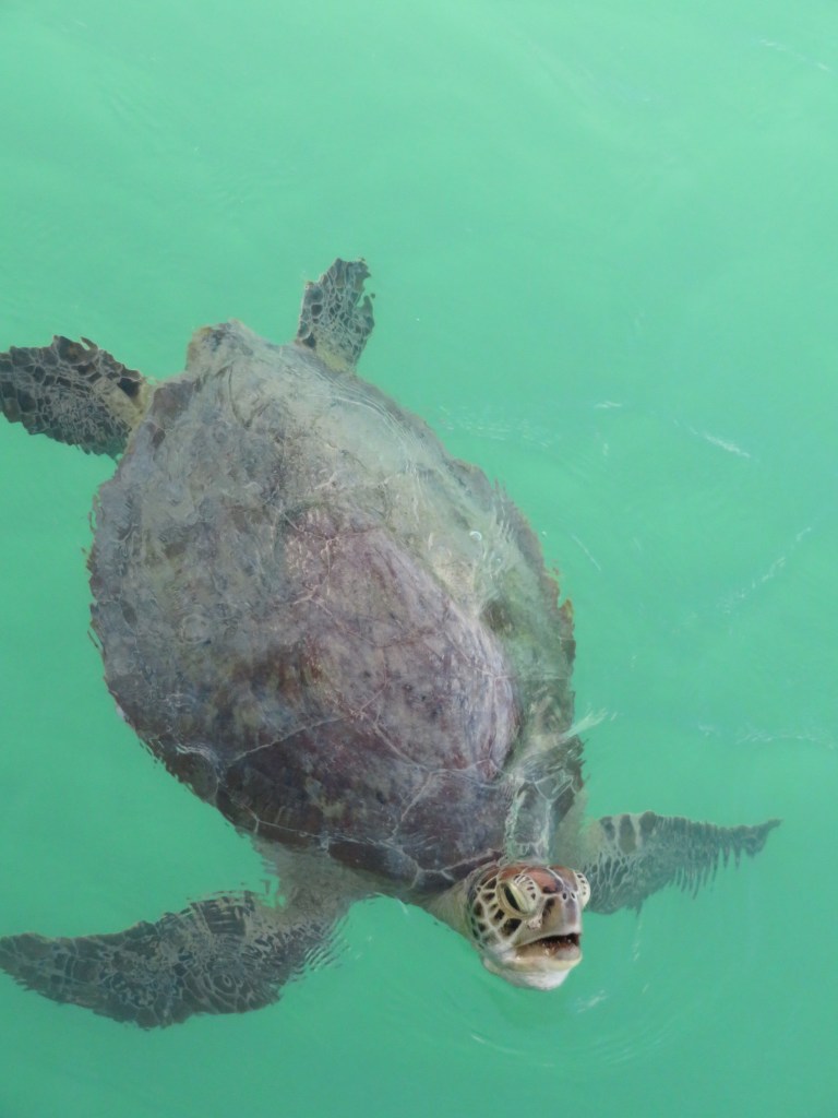 The dolphin encounter was at 7:45 the next morning, so I got up nice and early to be one of the first people there. The resort has permits to feed only two of the dolphins (who are 25 and 30 years old), and they’re allowed to feed them up to three times each day. Each feeding, the dolphins get three fish (300g total), so that they’re given 1kg each day (which is 10% of what they would normally eat, so they still have to rely on hunting their food). It was so amazing to see the dolphins coming closer and closer, and I couldn’t believe how close they came to shore! It was a really special day! I stayed for the second and third feedings, and there seemed to be fewer and fewer people each time, which was great. I spent the rest of the day on the beach and walking along the jetty (where there were two sea turtles if you waited patiently enough). The dolphins would come to the beach throughout the day, just to check things out. I went back to my dorm to see that there were other people who had moved in. I met Dave, an Irish guy who lives in Perth, so he and I went down for Happy Hour. It was Good Friday that day and Western Australia has a weird rule that on Good Friday, you’re not allowed to order a drink unless it comes with food. So we were forced to have an early dinner and then see how many other drinks we could order without food afterwards. The next day, I was leaving, which I was extremely sad about! The dolphin guides had said that they were looking for a volunteer to help the following week and I seriously considered cancelling my plans so I could fulfill my 10-year-old dreams of being a dolphin trainer. Dave and I grabbed some coffee and then headed to the dolphin encounter so he could watch it for the first time and I could watch it for the last time. This time, there were SO many people there – I couldn’t believe it! After the first encounter, I started my drive to Coral Bay, which was going to be a 6-hour drive.