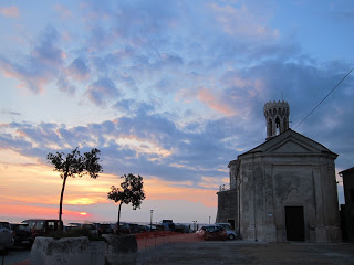formation of stalactites and stalagmites, which take about 100 to 150 years per 1 cm of growth. It’s crazy to see how big the stalactites are, and realize how long they’ve been around! The craziest part about the entire tour was when we were in the deepest part of the cave and the tour guide turned out all of the lights and lit one match, so we could see what it would be like as an explorer. I don’t think I’d be walking around caves with just a match! Unfortunately, we weren’t allowed to take pictures inside the caves, but we were able to take pictures at the very end of the tour – towards the exit of the caves. It was such a cool thing to see! After our tour, we had to wait for about an hour and half until our bus came. We waited at a pub beside the bus stop and our Airbnb host met us there to give us the key to our next destination in Piran (pronounced Peer-an). Piran is one of Slovenia’s only coastal towns, so we were able to be close to the Adriatic Sea while watching the sunset. We only stayed one night, but we took advantage of the seafood there! We walked into a random restaurant (Restaurant Pavel) and the waiter completely took over. He told us to close our menus and he would take care of the rest. When he brought out bibs with bowties, we weren’t sure what we’d be in for. However, he brought out a HUGE plate of assorted seafood – shrimp, mussels, scallops, razor clams, and more, all covered in a tomato-wine sauce. Absolutely delicious! The next morning, we were planning to do a bit more exploring of Piran but because it still wasn’t tourist season, not much was open. It was cold and windy, so we decided to move on to our next destination – Bled. In order to get there, we had to catch a bus back to Ljubljana and then take a train to Lesce, where we had a private room in a hostel. The hostel (1A Adventure Hostel) was in an old monastery and it had a city clock next to it (RIGHT outside our window), which rang every 15